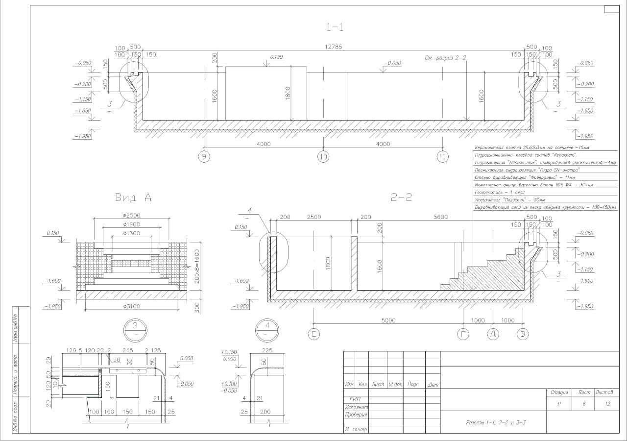 - Конструктив чаши, включая схемы армирования и утепления.
