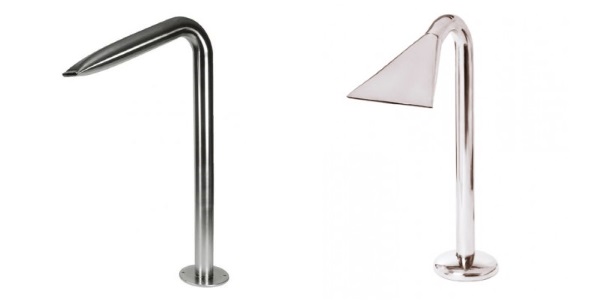 - Водопады – широкие гусаки из нержавеющей стали, из которых вода падает в бассейн. Создают интересный эстетический эффект, а также применяются для интенсивного гидромассажа плеч и шеи. Монтируются в непосредственной близости от бассейна или на его борт. Забор воды производится из чаши через встроенную форсунку, насосом подается на излив (гусак), откуда снова попадает в бассейн.